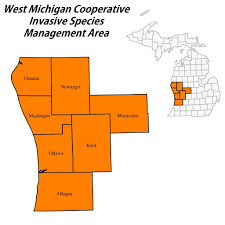 The West Michigan Cooperative Invasive Species Management Area (CISMA) covers seven counties, including Muskegon, Newaygo, and Oceana Counties. This organization comprises environmental groups, government agencies, nonprofit organizations, and private citizens, all working together to address invasive species at the local level.